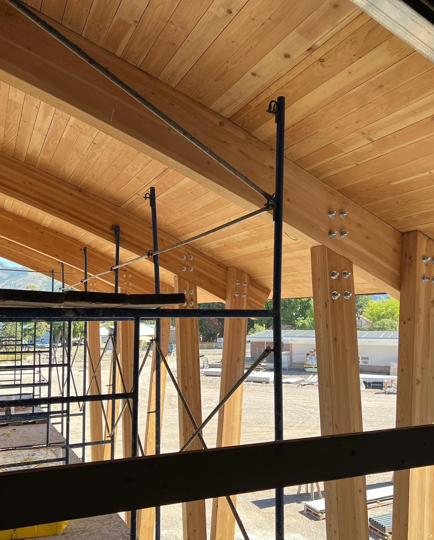 Exposed steel and wood.
